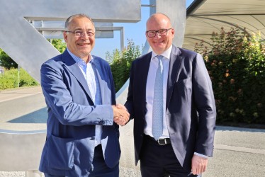 Neuer Präsident der AÖV ist der Geschäftsführer des Flughafen Linz, Mag. Norbert Draskovits (links), der diese Funktion turnusmäßig von Flughafen Wien-Vorstand Mag. Julian Jäger (rechts) übernimmt.